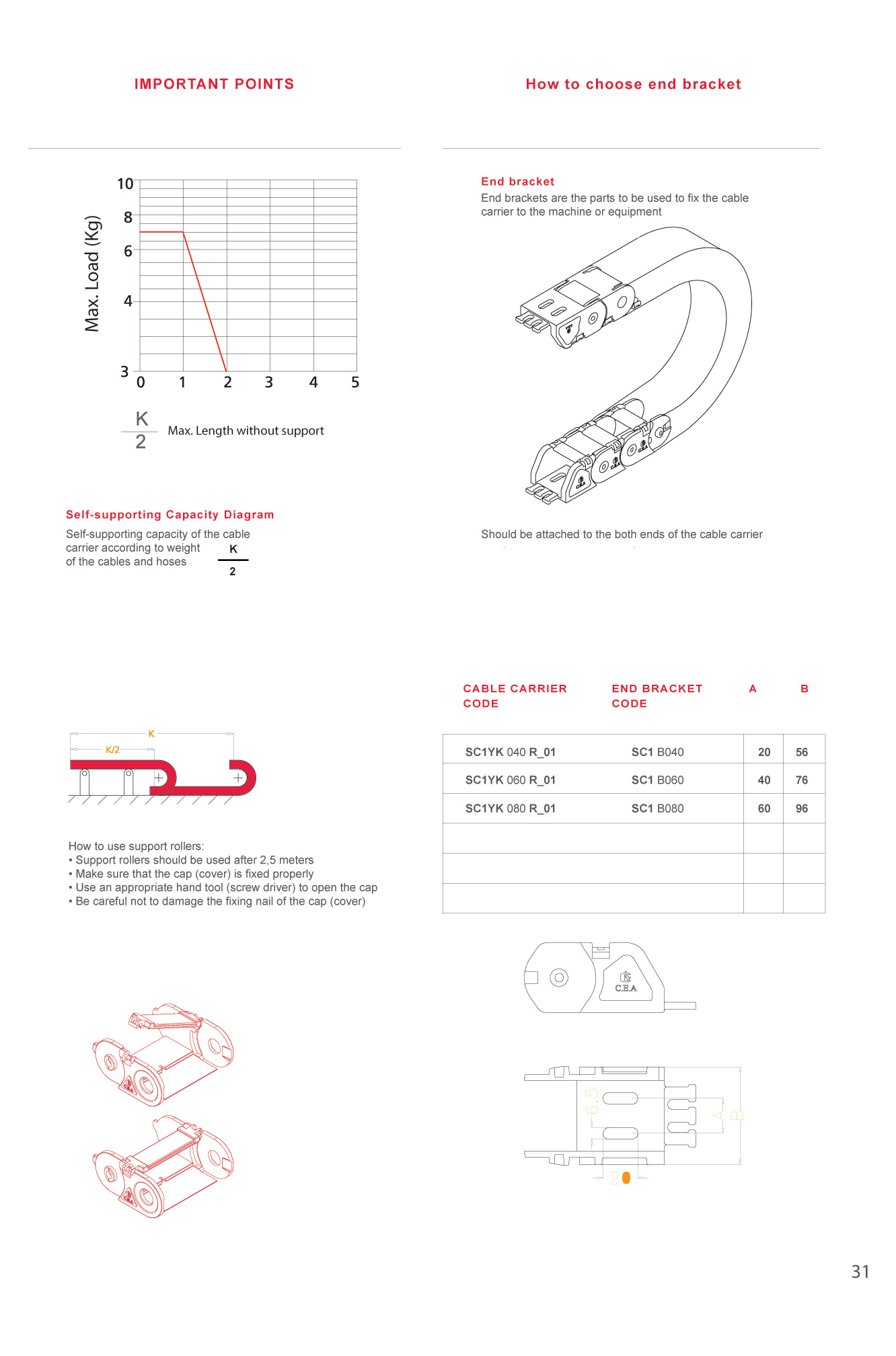 Cable carriers, inner height is between 20 mm – 40 mm and have different inner widths. Caps/lids can be opened.