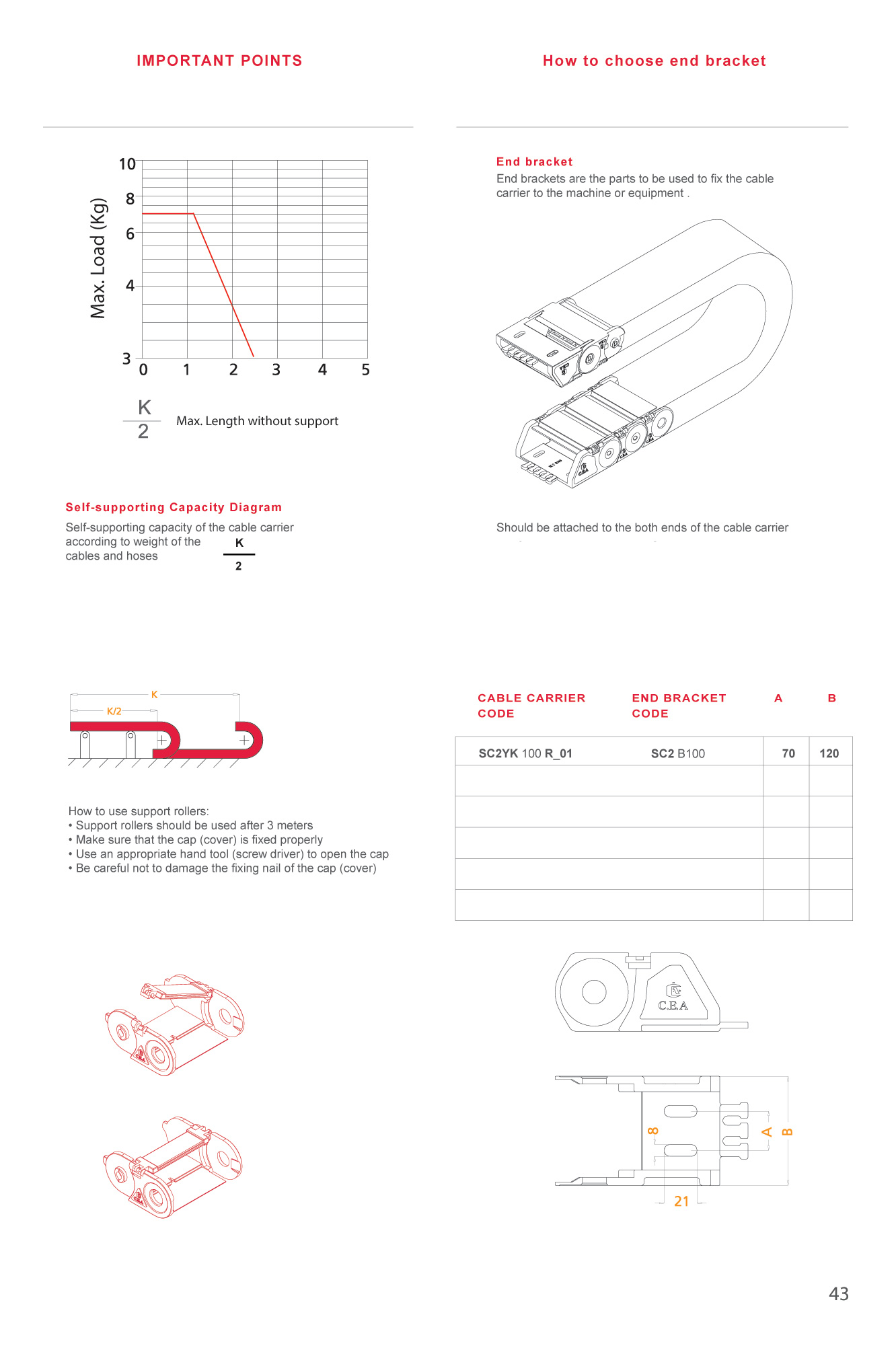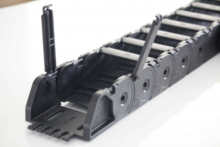 Cable carriers, inner height is between 40 mm – 80 mm and have different inner width.Both up and bottom sides have movable lids. This series has three different cover/lid types; without lids, lids only in one side, lids on both sides. Suitable for heavy conditions.
