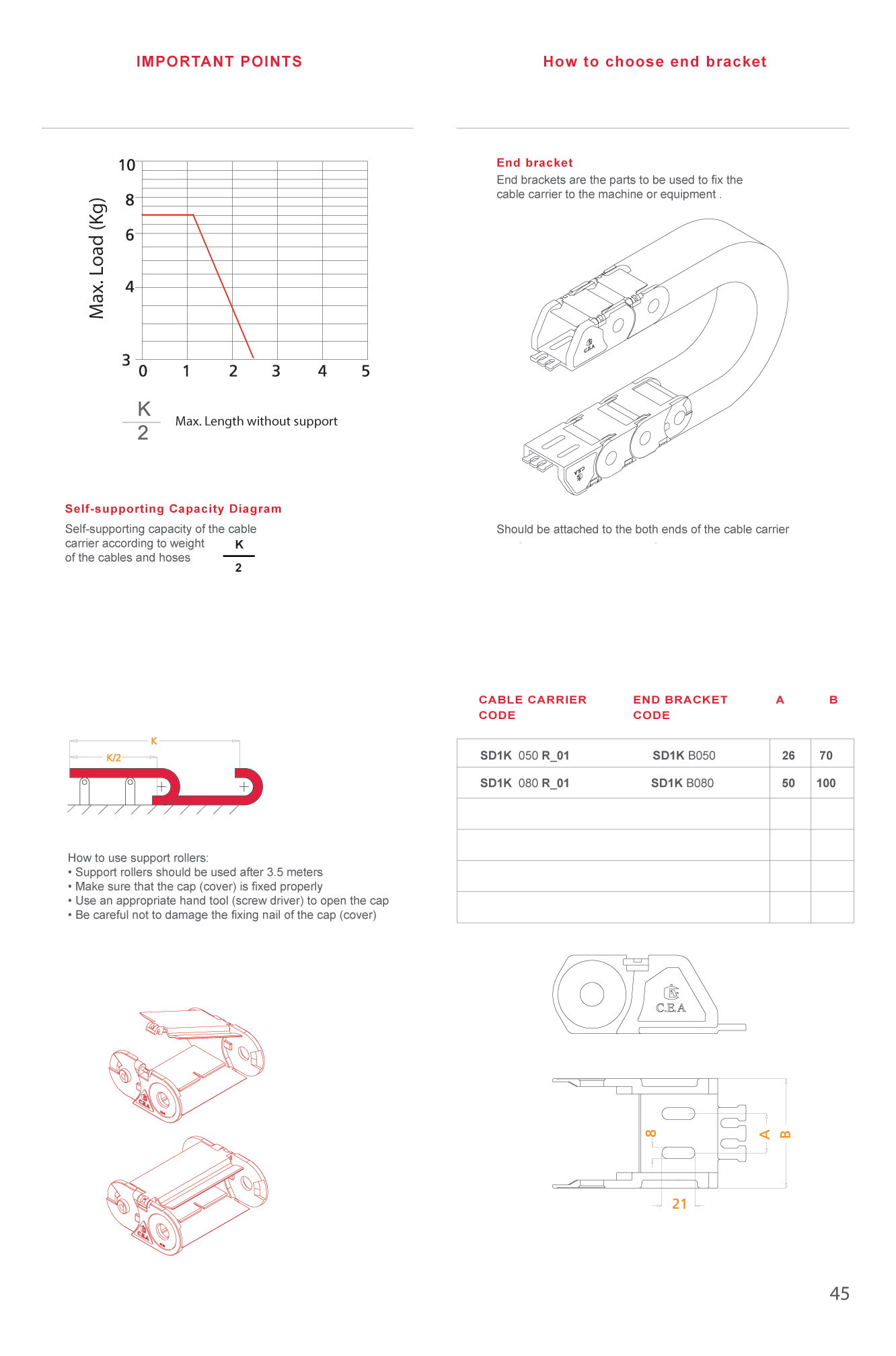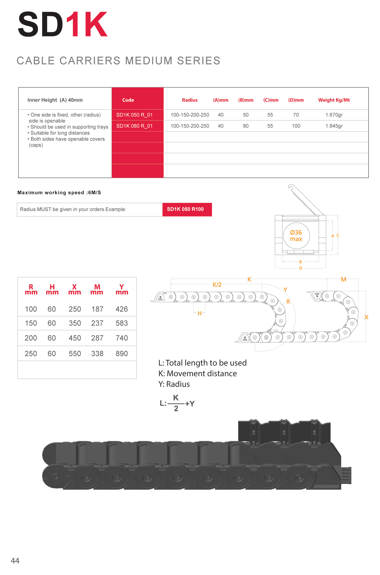 Hareketli kablo taşıyıcısı iç yüksekliği 39 mm.olup iç genişliği 50-100 mm açık modeldir.